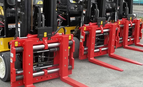 調(diào)距叉廣泛應(yīng)用于第三方物流。裝卸時搬運各種托盤、盒子、籠子和空運集裝箱,負(fù)載貨物的尺寸變化較大。叉車租賃車隊必須全天候進(jìn)行多種工況的應(yīng)用。